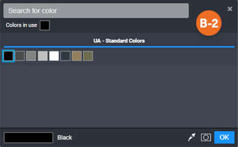 G. ITEM COLOR - Select the item color in this section. The available colors are shown as colorchips and the text below the chips shows the current color selected.